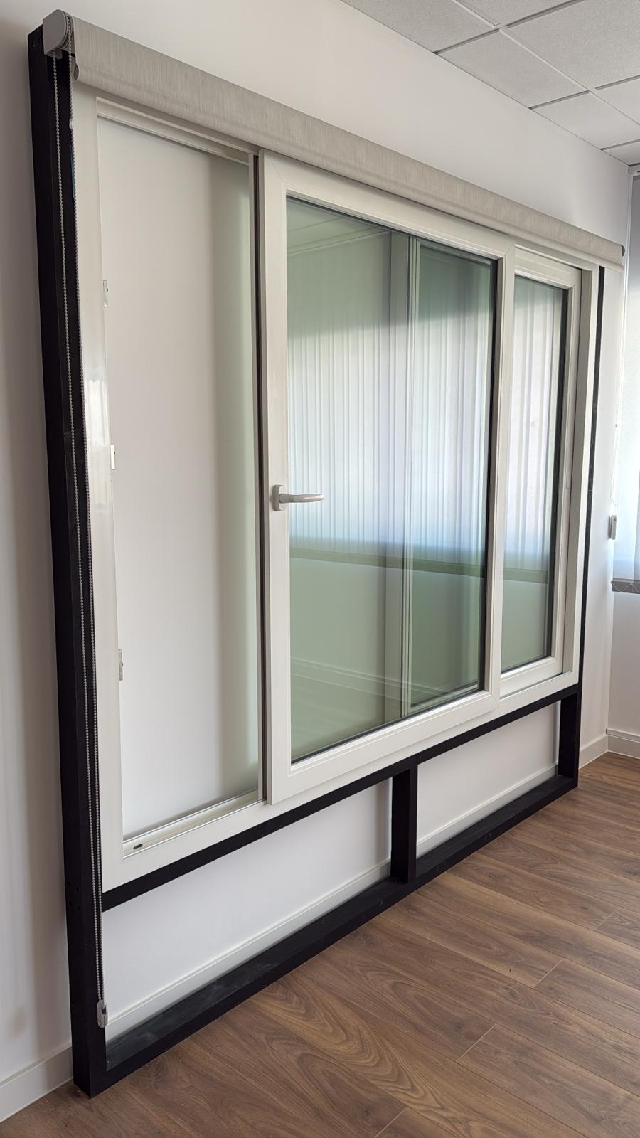 Ventana con hojas deslizantes que corren a través de un marco permitiendo crear varias combinaciones de diseño.
